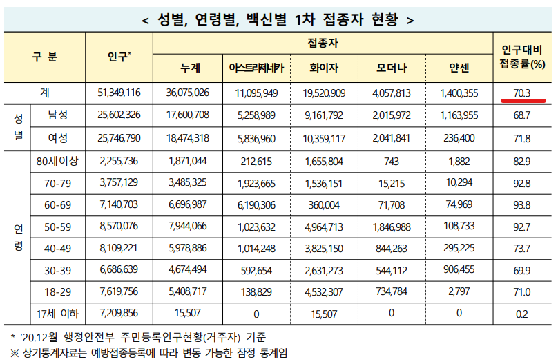 전 국민 1차 접종 70% 달성은