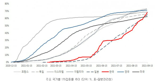 일부 언론에서는 우리나라의 1차 접종 70% 달성으로 자화자찬하는 분위기입니다.
